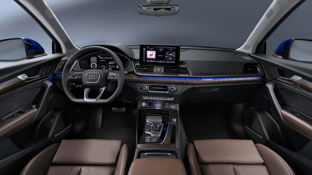 Внутри автомобиля установлена современная медиа система MIB3 с сенсорным тач-падом. При желании и за дополнительную плату можно добавить Audi Virtual Cockpit — виртуальную приборную панель, а также проекционный дисплей. Управление множеством функций в Audi Q5 Sportback осуществляется с помощью голосового помощника.