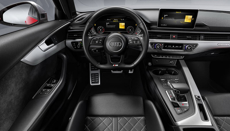 Внутреннее пространство седана и универсала практически идентично. В целом, интерьер напоминает салон модели А4 в премиум-версии, но с некоторыми обновлениями. Сиденья переднего ряда имеют более спортивный дизайн и улучшенную боковую поддержку. На педалях добавлены металлические накладки и карбоновые элементы.