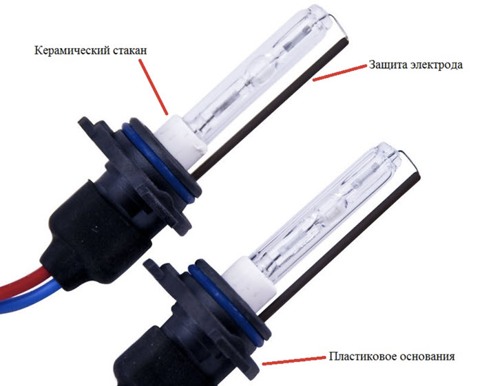 Ксеноновые фары обычно содержат одну лампу, которая производит свет благодаря электрическому разряду между двумя электродами и ксеноновым заполнителем.