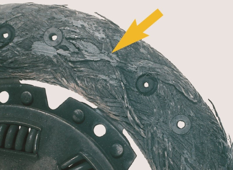В результате его толщина уменьшается, возникают следы неравномерного износа, а также впадины и выступы. Все это приводит к снижению прижимного усилия и эффективности работы сцепления, что может вызвать проскальзывание.