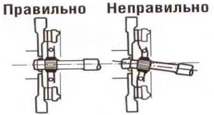 При установке корзины с установленным ведомым диском необходимо обеспечить определённый натяжение, которое можно определить, измеряя зазоры или ход винтов, крепящих корзину.