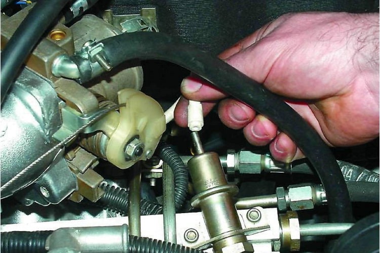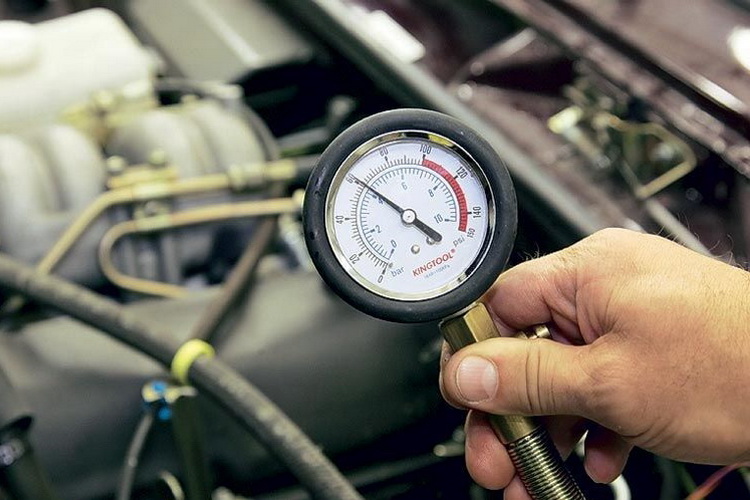 Работоспособность электрического насоса проверяют с помощью манометра, который устанавливают в топливную магистраль через специальный тройник. Давление топлива в системе должно составлять 6 атмосфер.