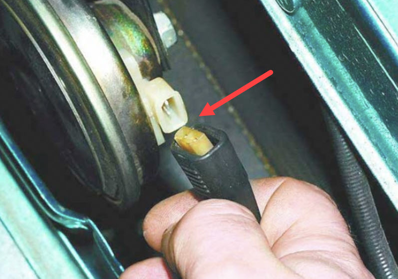 Чтобы избежать путаницы с громким звуком клаксона и множеством предохранителей, которых может быть довольно много, можно быстро определить разъём питания самого излучателя.