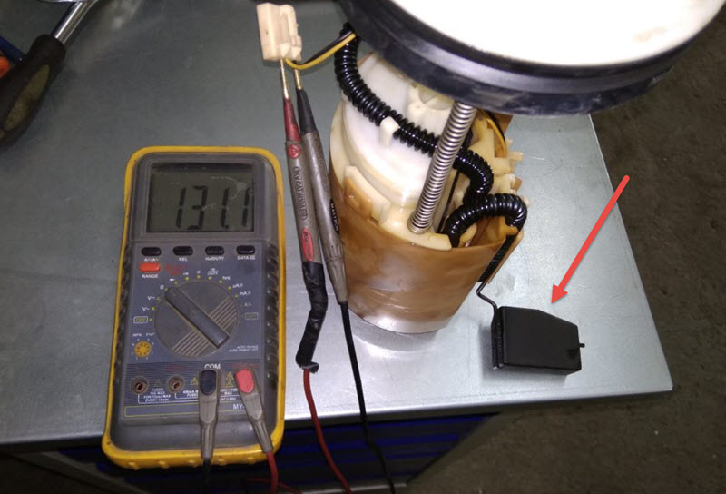 | Неисправность датчика уровня топлива | Проверьте сопротивление датчика мультиметром (значения зависят от модели автомобиля). | Замена датчика уровня топлива. |