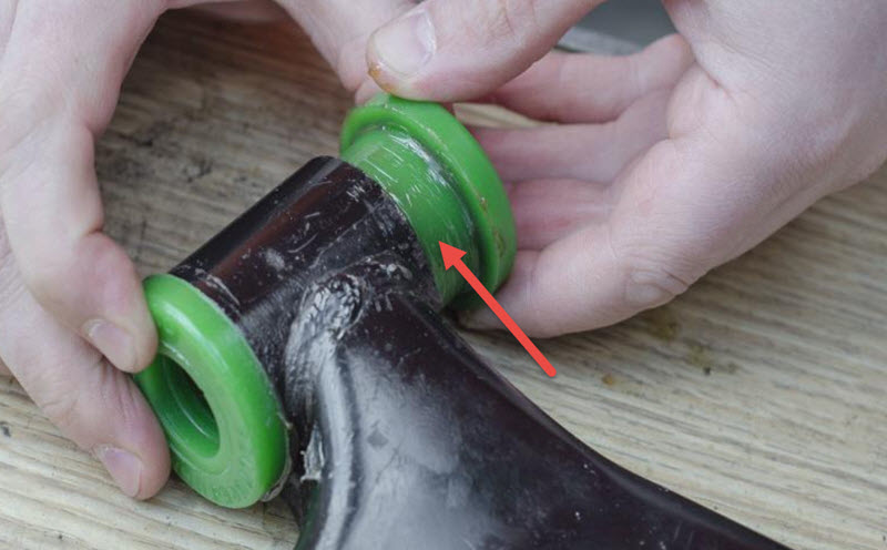 Внутренние участки контакта резины с металлом, скорее всего, не удастся смазать, так как они надежно защищены упругой втулкой. Кроме того, в этом нет особого смысла: если сайлентблок провернулся, он будет функционировать как шарнир на подшипнике скольжения и долго не прослужит.