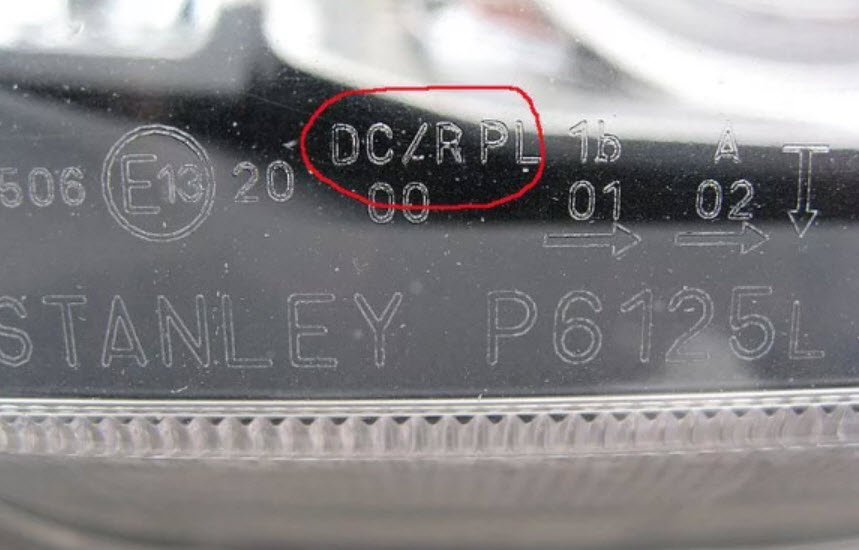 | На корпусе фары | CR | Ближний и дальний свет (общая маркировка) |