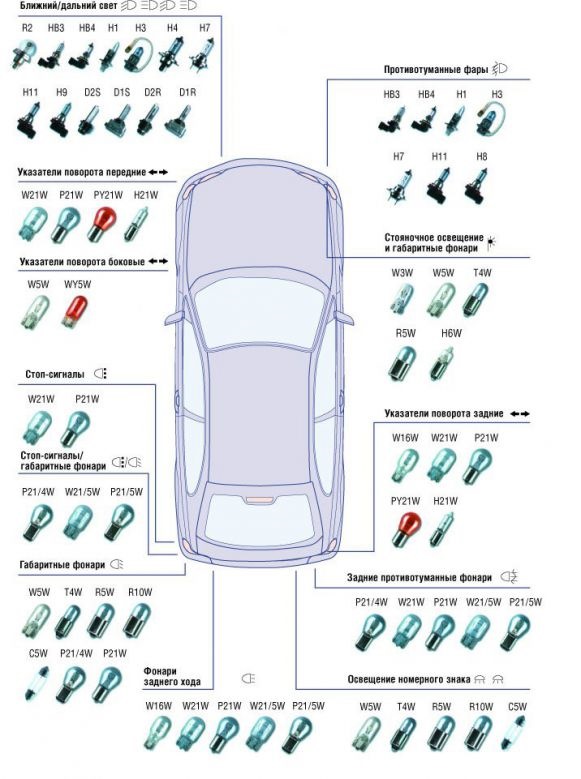 Излучатели света в автомобильных фарах могут быть представлены несколькими типами: