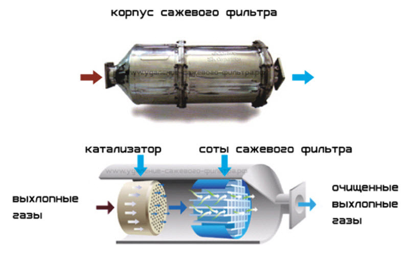С течением времени сажа накапливается и сжигается, для чего необходимы два условия: высокая температура, кислород и катализаторы, которые ускоряют этот процесс.