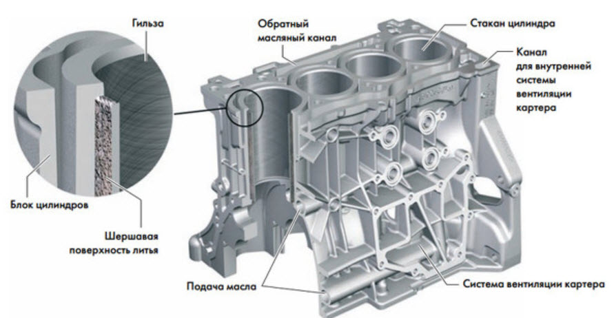 Такое решение находит применение и в ряде других двигателей, но не всегда оказывается удачным. Проблема заключается в том, что уменьшение толщины стенок гильз для повышения теплоотдачи может привести к деформации и образованию задиров.