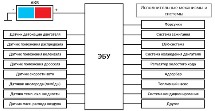 Режим работы устанавливается на основе данных, получаемых от нескольких активных датчиков. Исполнительные механизмы, также контролируемые компьютером, могут изменять этот режим. Если какое-либо воздействие на двигатель приводит к некорректным показаниям одного или нескольких датчиков, это указывает на наличие неисправности.