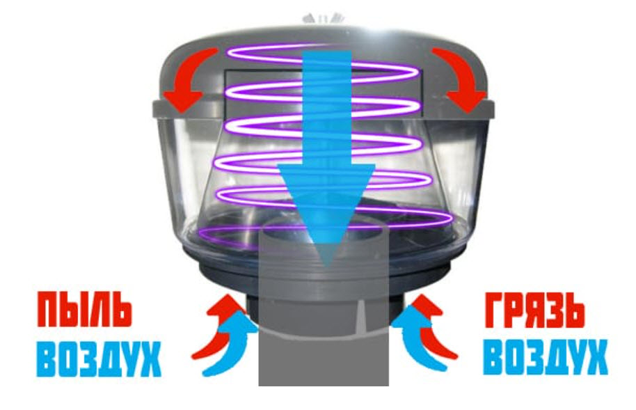 Существуют более сложные системы, предназначенные для очистки воздуха от крупных частиц. В их конструкции применяются как инжекционные потоки, так и дополнительные вентиляторы, создающие эффект центрифуги для удаления пыли. Некоторые из них оборудованы прозрачными контейнерами для сбора пыли, что позволяет визуально контролировать необходимость их очистки.