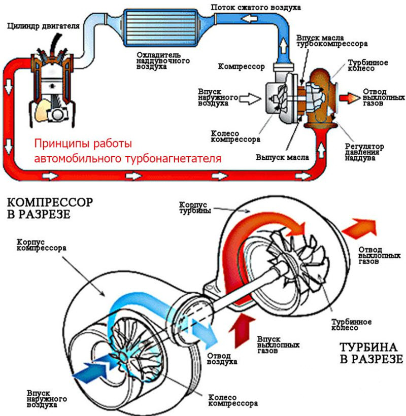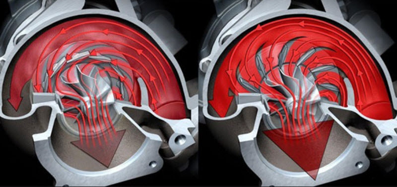 Но исторически массовое внедрение турбин, работающих на энергии выхлопных газов, началось именно с двигателей с воспламенением от сжатия.