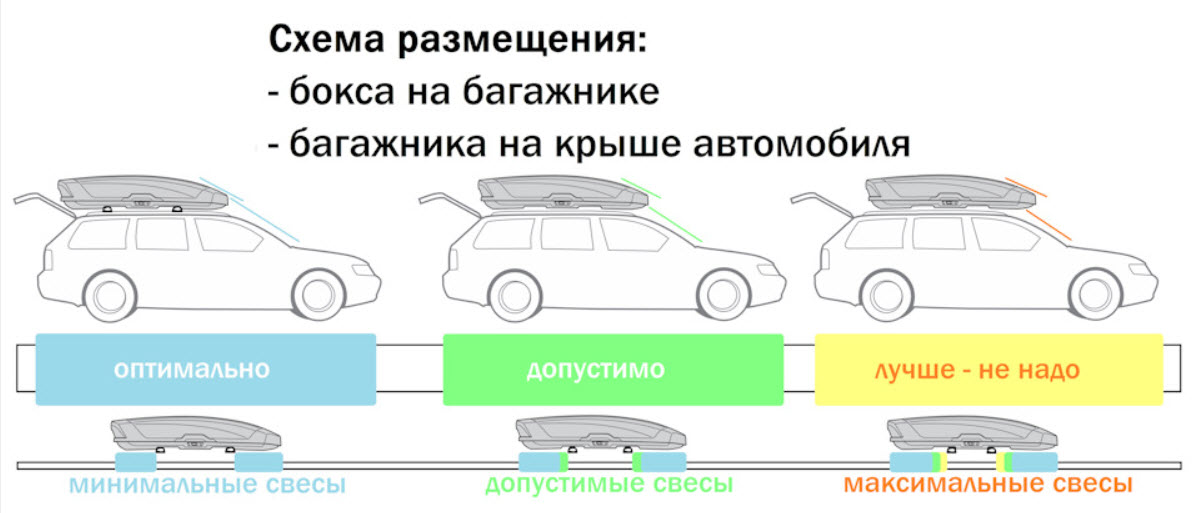 При установке багажника учитывайте нагрузку и предполагаемый стиль вождения. Сильное смещение вперед может создать нежелательную подъемную силу, а смещение назад – перегрузить заднюю ось и затруднить открытие пятой двери на хэтчбеках и универсалах.