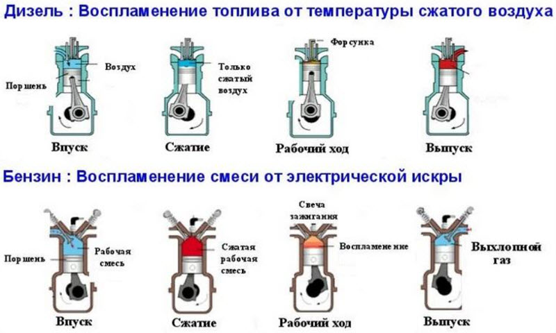 Чем отличается Бензиновый двигатель от Дизельного