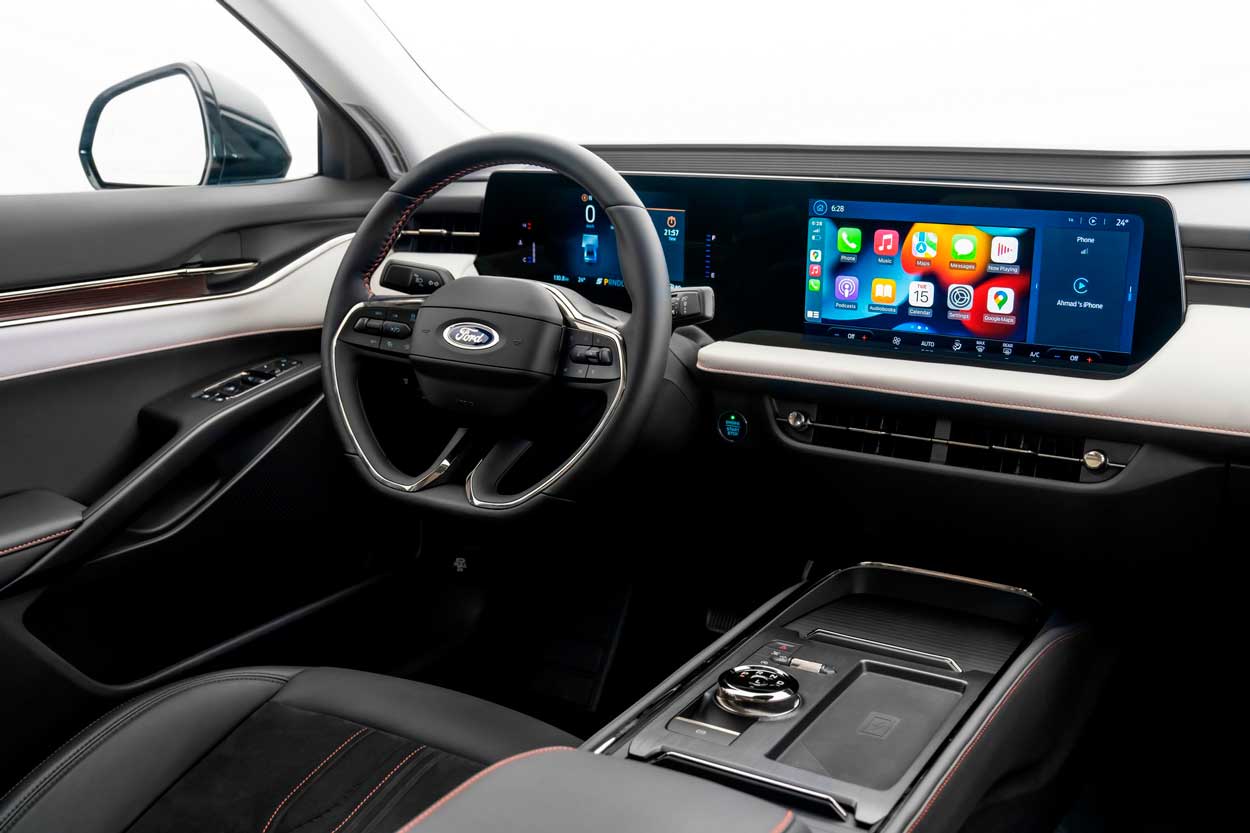 Интерьер Ford, основанный на модели Mondeo, во многом схож с внутренним оформлением его китайского аналога. Тем не менее, разработчики немного «потерпели» в вопросе реализации экранов для экспортной версии, хотя оба дисплея находятся под одним козырьком.