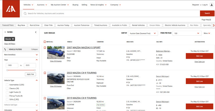 Крупнейший автомобильный аукцион в США ежедневно предлагает около 175 тысяч новых лотов.