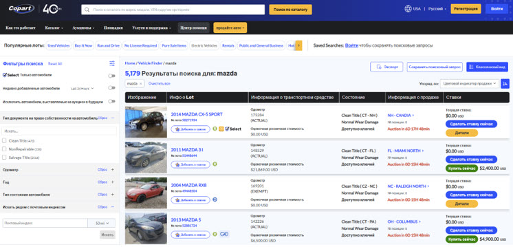 В целом, интерфейс напоминает IAAI, но с описаниями фильтров на русском языке.