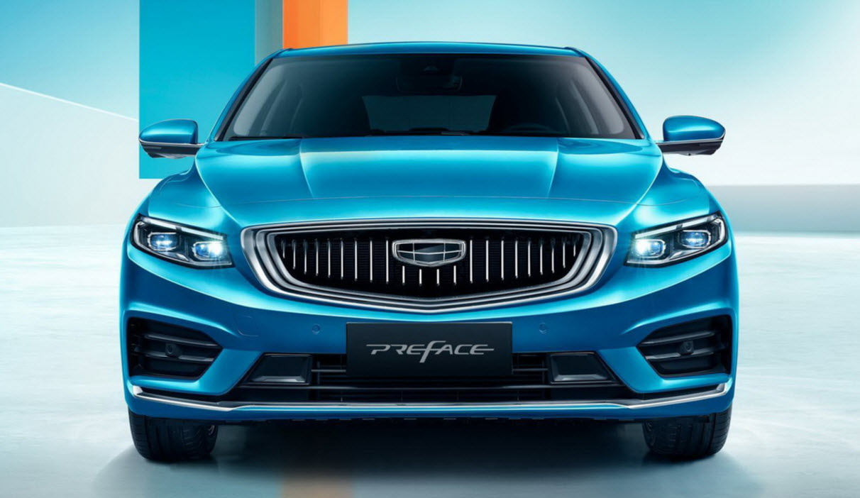 Модель Preface получила уникальную переднюю часть с характерной вогнутой решеткой Geely, светодиодные фары, широкий обвес с оригинальной архитектурой и капот с четкими линиями, что придает автомобилю спортивный вид.