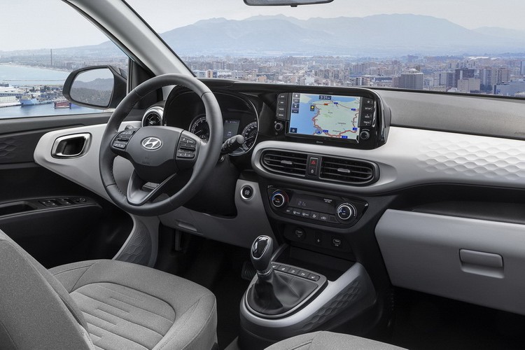 В отличие от кузова, интерьер Hyundai i10 2019—2020 годов претерпел значительные изменения. Передняя панель теперь обладает оригинальной формой, на которой сверху установлен блок управления, включающий сенсорный экран, несколько кнопок и поворотные элементы для настройки функций салона.
