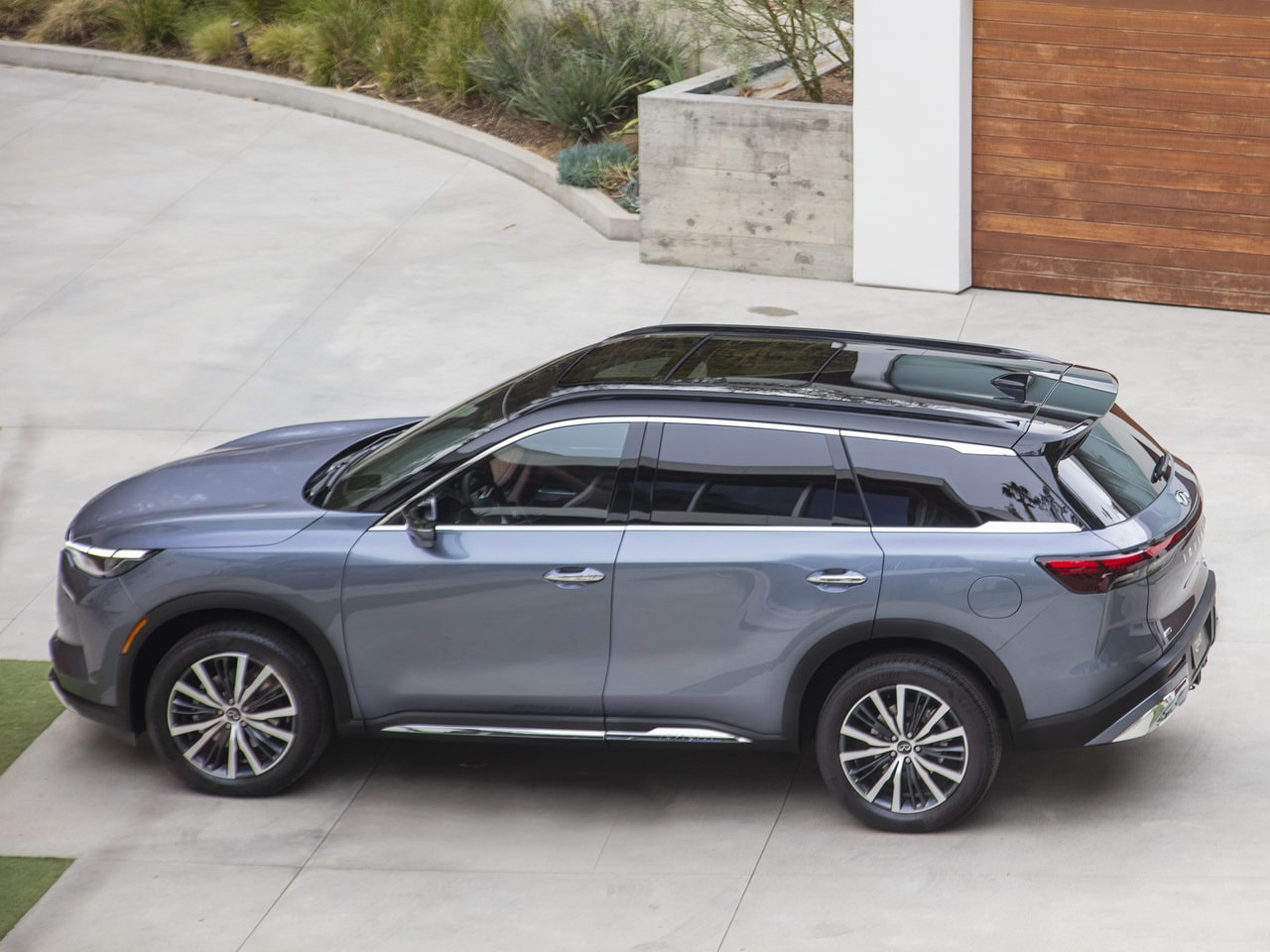 Новый кроссовер QX60 2022 года получил более утонченные линии по сравнению с предыдущими моделями. Его можно считать аналогом QX50 с характерными выпуклыми колесными арками.