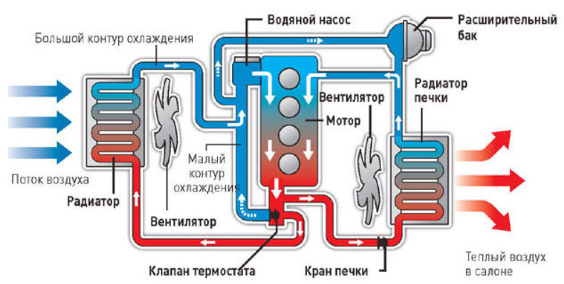 Это позволяет повысить стабилизированную температуру двигателя, что, в свою очередь, увеличивает его КПД и снижает расход топлива. Однако одновременно возрастает риск отказа при мелких неисправностях, что может привести к мгновенному закипанию, утечке жидкости и перегреву мотора.