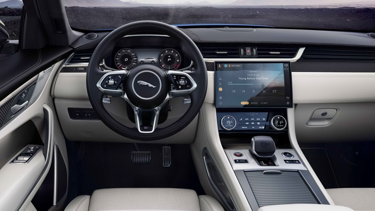 Как и все современные автомобили Ягуар, данная модель поддерживает Apple CarPlay и Android Auto, беспроводную зарядку, а также усилитель сотового сигнала. Автомобиль также имеет возможность беспроводного обновления программного обеспечения.