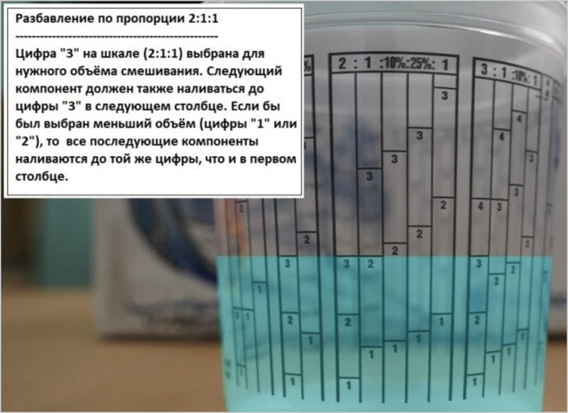 Как правильно измерять компоненты краски в мерной ёмкости?