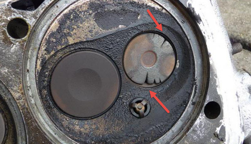 Чаще всего выходят из строя выпускные клапаны, которые в открытом положении подвергаются воздействию горячих отработанных газов. Это приводит к их перегреву, что может вызвать потерю прочности и быстрое окисление жаропрочной стали, из которой изготовлены их тарелки. В запущенных ситуациях это может сопровождаться образованием трещин в металле.