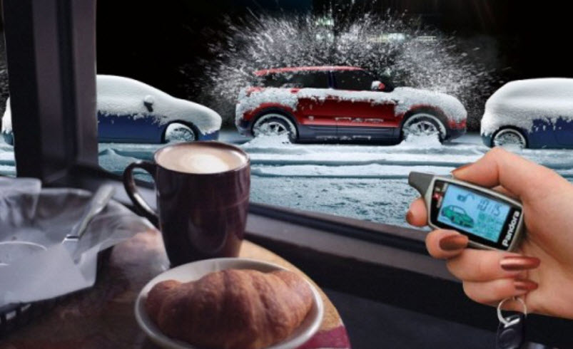Автомобильная охранная система может включать функцию дистанционного запуска двигателя. При переводе трансмиссии в нейтраль и активации стояночного тормоза, с пульта управления можно подать команду на запуск двигателя. В этот момент начинает функционировать штатный отопитель, настройки которого заранее установлены на максимальную эффективность. Таким образом, к моменту, когда водитель садится в автомобиль, и двигатель, и салон будут уже прогреты.