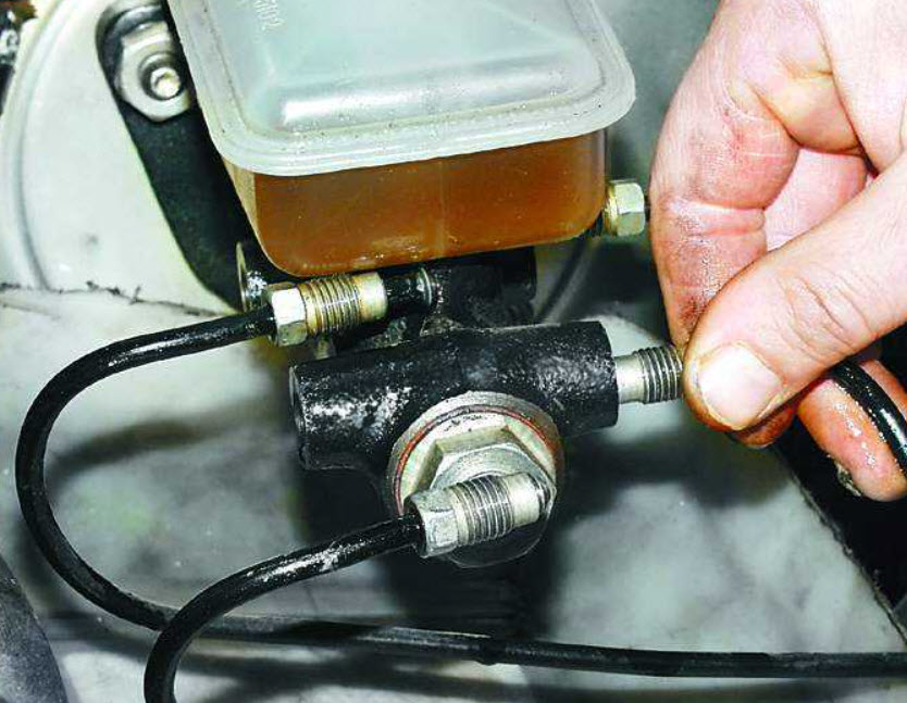 Если же возникнет необходимость прокачать и ГТЦ, то это можно сделать вдвоем, последовательно перекрывая выходные штуцеры, оставляя открытым только один. Через него воздух будет удаляться путем открытия штуцера перед нажатием на педаль и закрытия перед ее отпусканием.