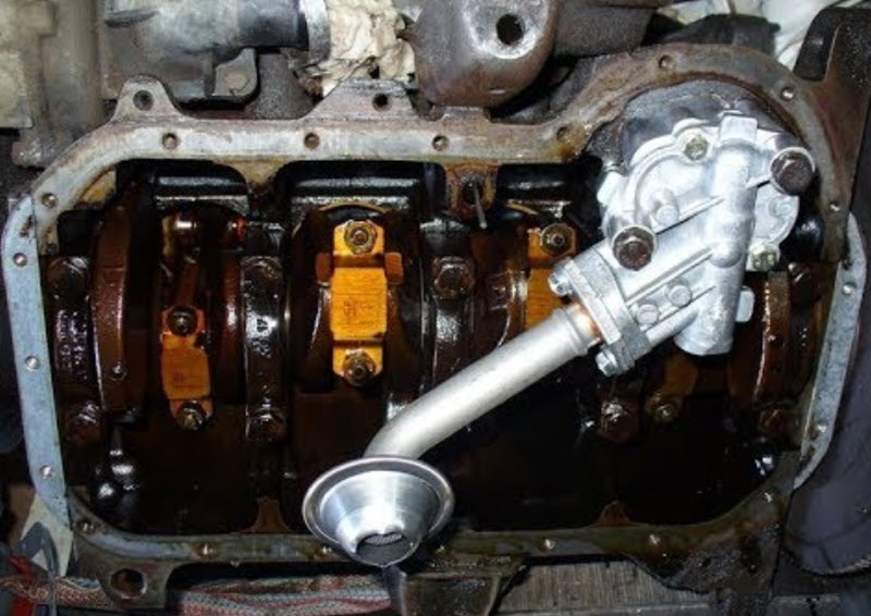 К насосу присоединяется маслозаборник, отверстие которого с фильтром грубой очистки располагается ниже уровня масла в картере, зачастую даже в специально созданном углублении.