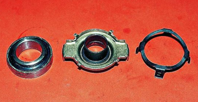 | Принцип работы | Выжимной подшипник (выжимной) передает усилие от вилки сцепления на лепестки диафрагменной пружины корзины сцепления, отжимая ее и разъединяя двигатель от трансмиссии. | Затрудненное переключение передач, особенно первой и задней. | Визуальный осмотр при снятой коробке передач. |