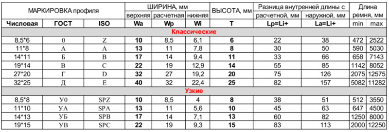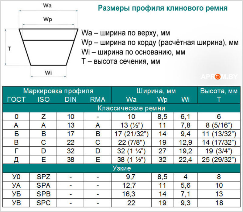Маркировка клиновых ремней