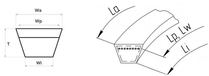 | Li | Внутренняя длина | Длина ремня по внутренней окружности, обычно указывается в миллиметрах или дюймах. |