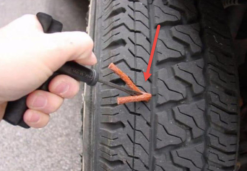 Как заделать дырку в шине жгутом?