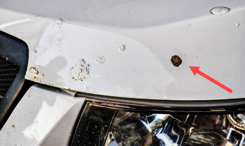 Часто лакокрасочное покрытие может пострадать и из-за неблагоприятных погодных условий, особенно во время града зимой.