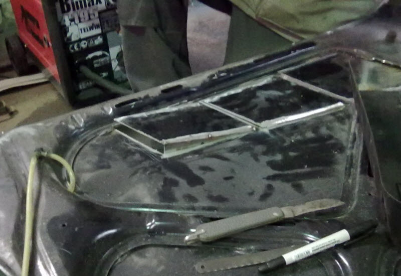 Сварочные швы очищаются и выравниваются с помощью шлифовки, после чего заполняются кузовным герметиком. Неровности устраняются с помощью шпатлевки на предварительно загрунтованной поверхности. После высыхания капот окончательно шлифуется с использованием тонкой наждачной бумаги и грунтуется.
