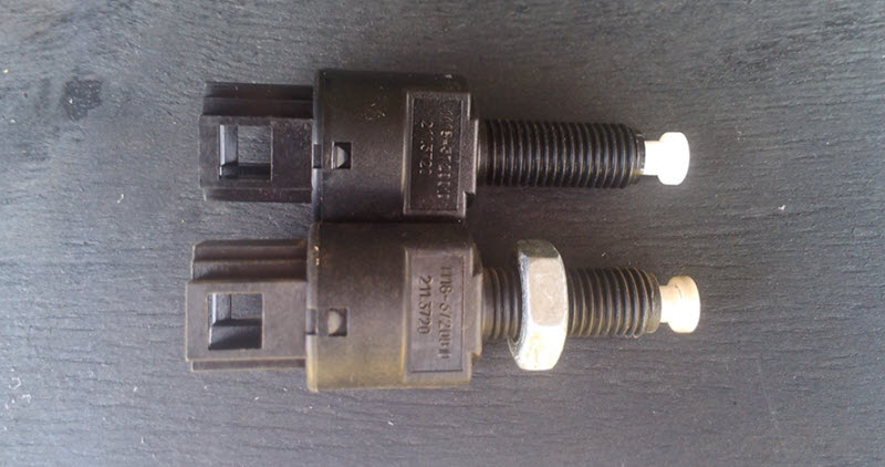 Как устранить ошибку? Проверьте срабатывание стоп-сигналов в задних фонарях. Непрерывная работа тормозных огней указывает на неисправность в электрической цепи между датчиком тормоза и блоком управления. Извлеките датчик и проверьте состояние его контактов. При необходимости зачистите их.