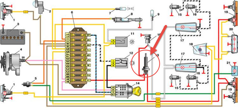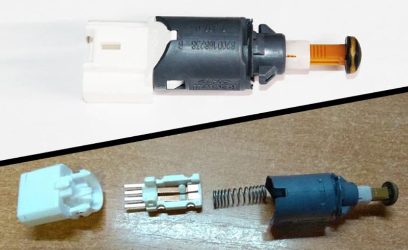 Для диагностики в первую очередь необходимо проверить сам концевик. Определяются пары нормально разомкнутых и замкнутых контактов, что можно сделать, изучив электросхему автомобиля, где указаны номера контактов разъёма.