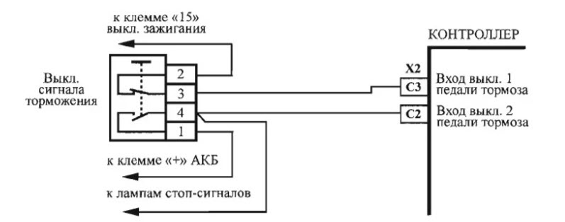 Контроль исправности датчика тормозной педали, а также ламп задних фонарей и проводки осуществляется электронным блоком управления (ЭБУ), который обычно является частью системы управления двигателем (ЭСУД).
