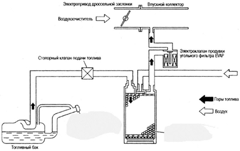 Дополнительные устройства, отвечающие за чистоту, также играют важную роль. В сепараторе происходит отделение пены, а пары бензина проходят через угольный фильтр-адсорбер, управляемый электроникой. Когда фильтр заполняется, он продувается во впускной коллектор.