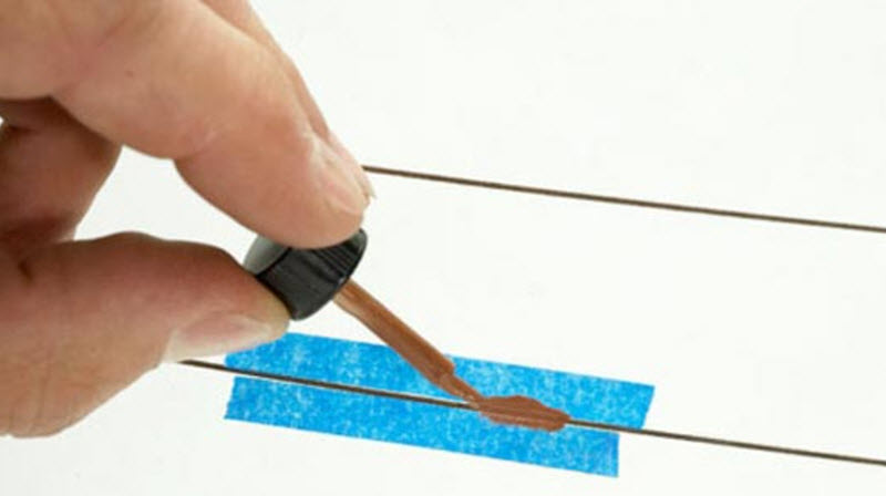 Ключевым моментом является сохранение характеристик погонного сопротивления нити (полоски). Для этого стекло обклеивается малярным скотчем, оставляя между полосками промежуток, равный ширине восстанавливаемой нити. Сопротивление проводника зависит от его ширины и толщины, поэтому важно обеспечить необходимую высоту ремонтного слоя относительно стекла.