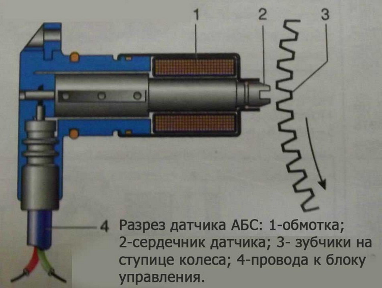 Датчик ABS предназначен для точного определения момента, когда колесо начинает блокироваться, основываясь на частоте его вращения. Антиблокировочная система состоит не только из датчиков, но и включает гидравлический и управляющий блоки.