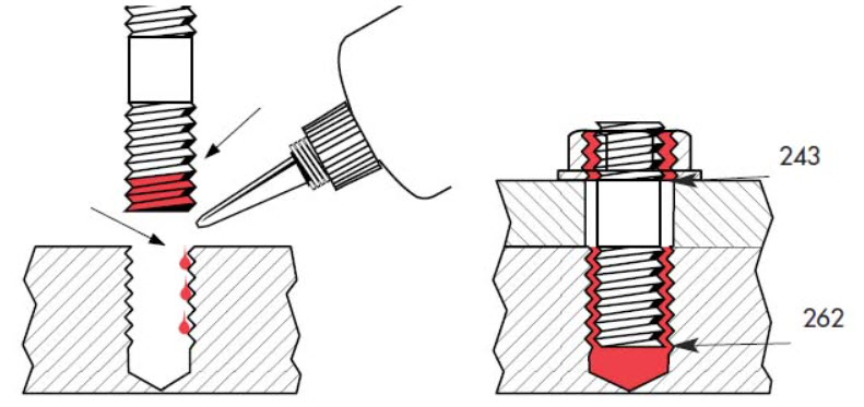 Резьбовые герметики, известные также как фиксаторы, наносятся на болты и гайки перед установкой деталей. Под воздействием усилия затяжки или при отсутствии контакта с кислородом воздуха они полимеризуются и надежно фиксируют резьбу. Таким образом, влага и атмосферные условия не проникают в зазоры, что способствует долговечности крепежных элементов.