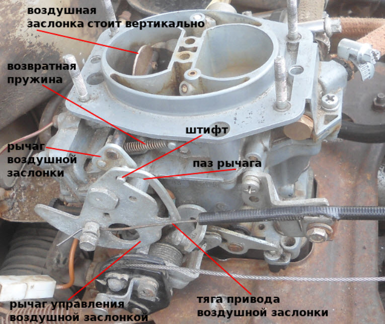 После первых вспышек в цилиндрах создается разрежение, которое через диафрагму открывает воздушную заслонку, предотвращая избыточное обогащение и заливание свечей.