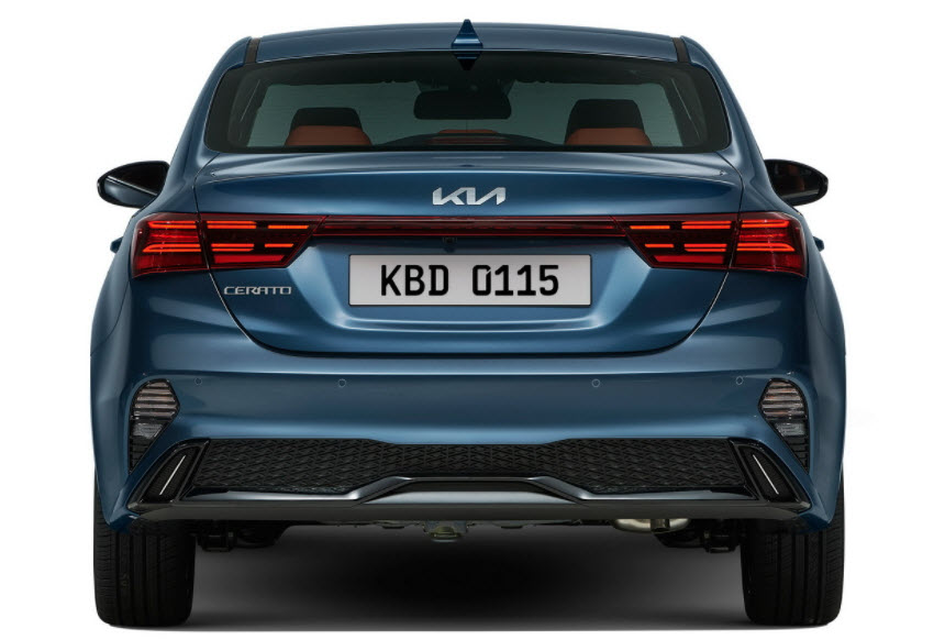 Задняя сторона кузова включает ниши для противотуманных фар и имитацию диффузоров. На крышке багажника у топовых версий Cerato установлен спойлер.