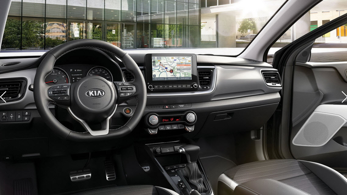 Приборная панель и рулевое колесо были заимствованы у модели Rio, которая также оснащена кнопками для управления аудиосистемой. Панель слегка наклонена в сторону водителя, а на центральной консоли установлен 8.8-дюймовый экран. На тоннеле предусмотрены два подстаканника.