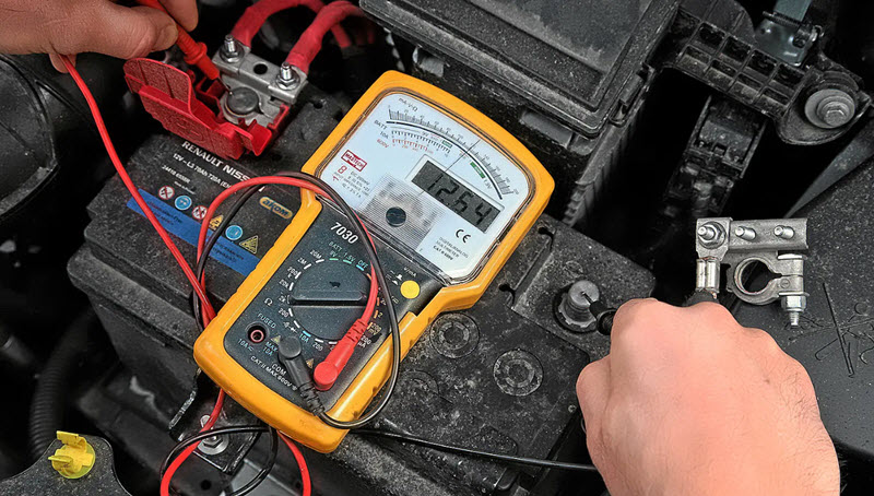 Если напряжение падает до 12 V и ниже, а при подключении мощной нагрузки, такой как фары или обогреватели, опускается до 10 V и менее, это указывает на разряд или неисправность аккумулятора.