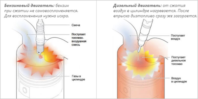- Повышенная детонация. Это связано с особенностями работы дизельного двигателя, где топливо не загорается, а взрывается под давлением.