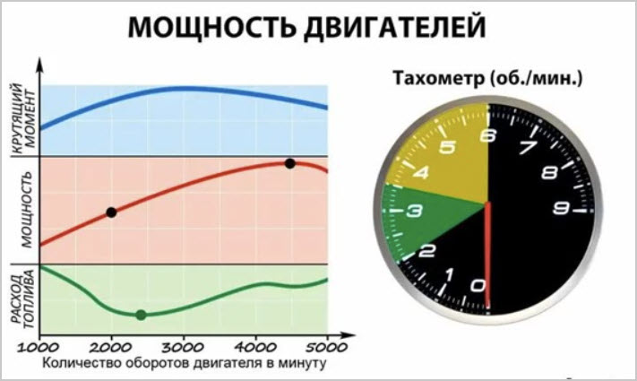 Что касается дизельных двигателей, то оптимальные обороты для них составляют от 1,5 до 2,5 тысяч.